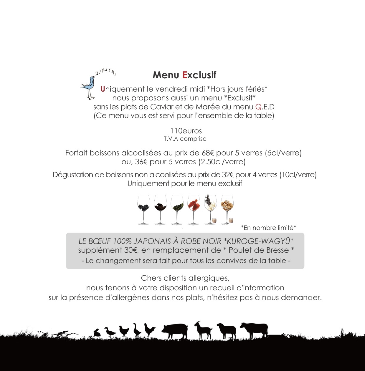 Attention ! nous ne proposons ni menu végétarien ni menu vegan, le menu sans lactose non plus