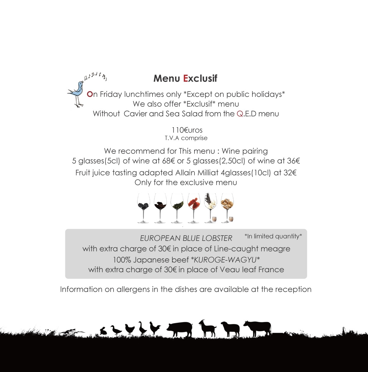 étant d´une extrême fraîcheur, ces menus ne vous seront annoncés que lors de votre arrivée au restaurant.