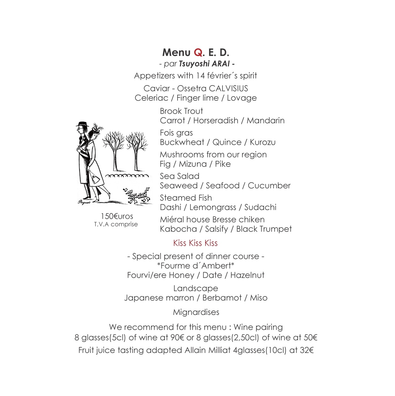 notre chef Tsuyoshi ARAI vous fera découvrir l'esprit d'une cuisine française nuancée par le savoir faire japonais.